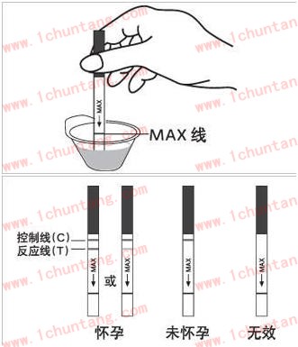 2、怀孕:出现二条线,即对照线和检测线都显色,且检测线明显清晰,表示已经怀孕;如对照线明显清晰而检测线显色很浅,表示可能怀孕,请隔2天用新的早服纸采集晨尿重新检测。
